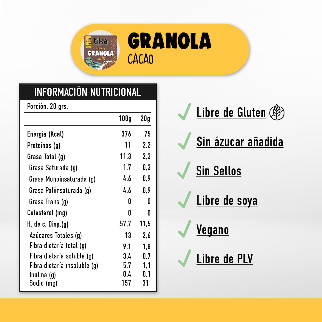 Tika Granola Crunchy Cacao 20g x 21 Colaciones