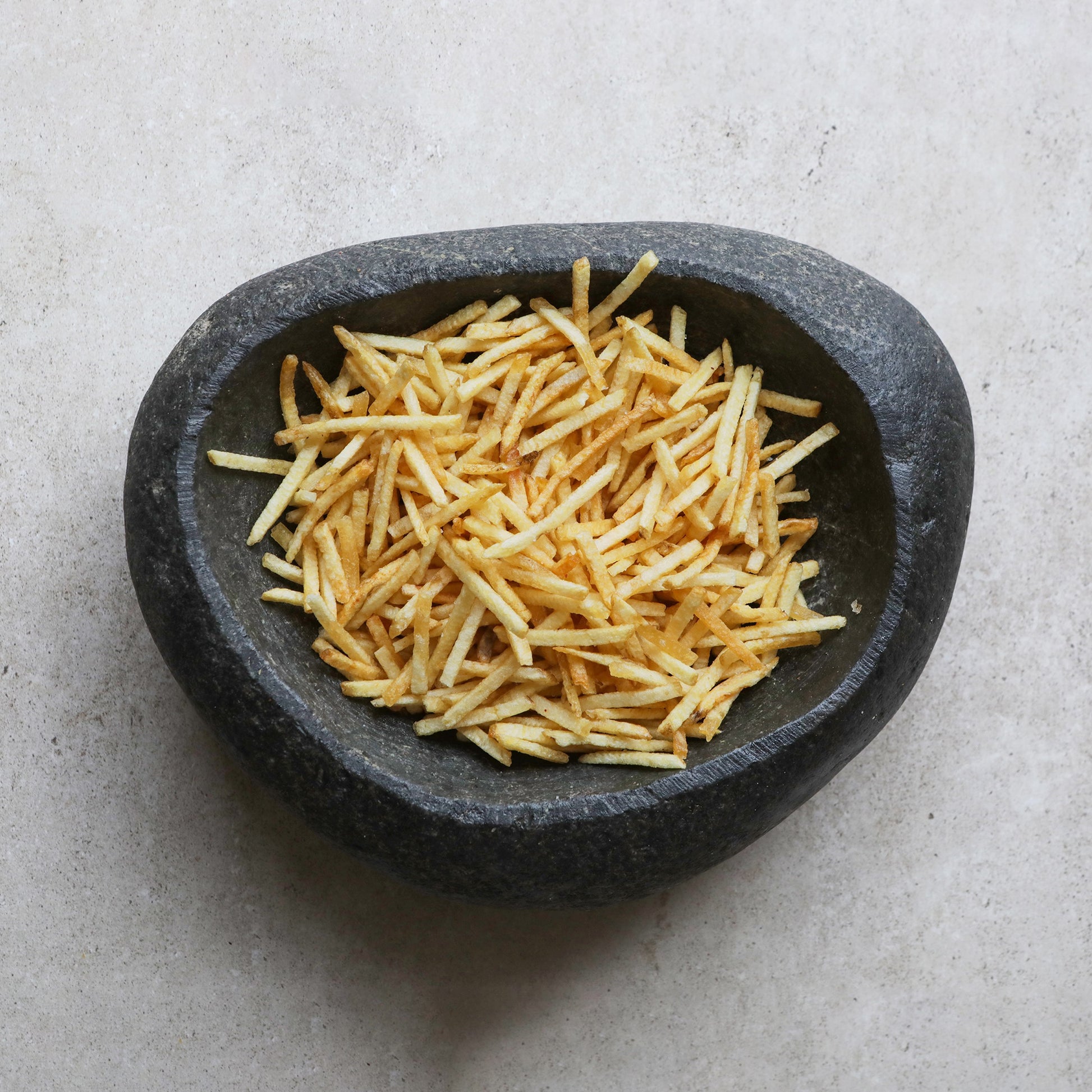 Papas hilo elaboradas artesanalmente con papas de campos chilenos, sazonadas con sal de mar y un sabroso toque a cebollita grillada.